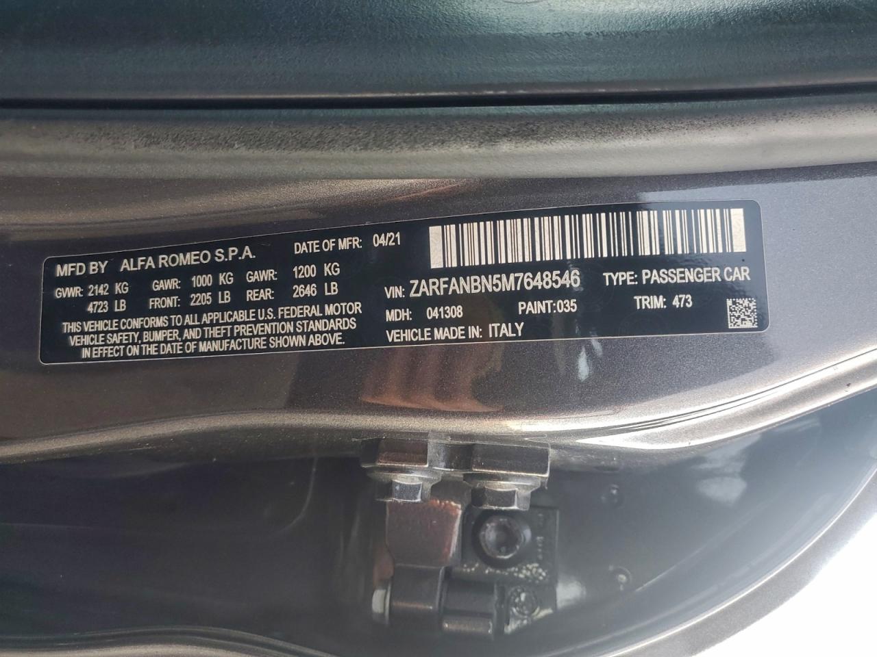 Автомобиль 2021 года — отличное сочетание качества, надёжности и выгоды. Компания Royal Motors предлагает пригнать ALFA ROMEO GIULIA из США под ключ: мы проверяем авто по VIN (ZARFANBN5M7648546), организуем доставку, растаможку и при необходимости выполняем ремонт на собственном СТО в Киеве. Модель имеет цвет Серый, работает на Бензин, оснащена двигателем 2.0 и приводом Полный привод. С Royal Motors вы получаете полностью проверенный автомобиль с прозрачной историей и выгодной ценой.