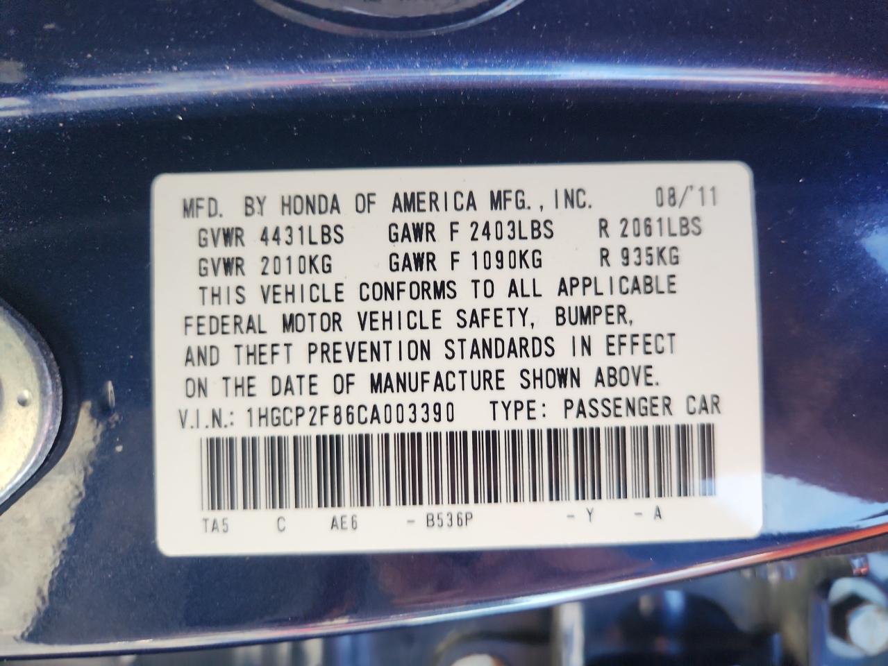 Автомобиль 2012 года — отличное сочетание качества, надёжности и выгоды. Компания Royal Motors предлагает пригнать HONDA ACCORD из США под ключ: мы проверяем авто по VIN (1HGCP2F86CA003390), организуем доставку, растаможку и при необходимости выполняем ремонт на собственном СТО в Киеве. Модель имеет цвет Синий, работает на Бензин, оснащена двигателем 2.4 и приводом . С Royal Motors вы получаете полностью проверенный автомобиль с прозрачной историей и выгодной ценой.