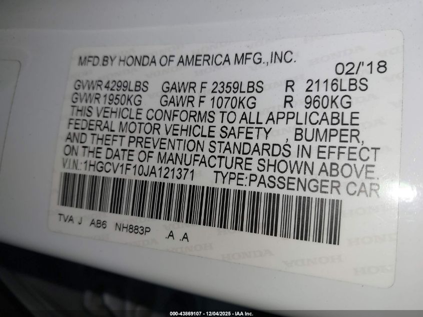 Автомобиль 2018 года — отличное сочетание качества, надёжности и выгоды. Компания Royal Motors предлагает пригнать HONDA ACCORD из США под ключ: мы проверяем авто по VIN (1HGCV1F10JA121371), организуем доставку, растаможку и при необходимости выполняем ремонт на собственном СТО в Киеве. Модель имеет цвет Белый, работает на Бензин, оснащена двигателем 1.5 и приводом Передний привод. С Royal Motors вы получаете полностью проверенный автомобиль с прозрачной историей и выгодной ценой.