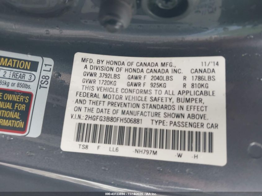 Автомобиль 2015 года — отличное сочетание качества, надёжности и выгоды. Компания Royal Motors предлагает пригнать HONDA CIVIC из США под ключ: мы проверяем авто по VIN (2HGFG3B80FH506881), организуем доставку, растаможку и при необходимости выполняем ремонт на собственном СТО в Киеве. Модель имеет цвет Серый, работает на Бензин, оснащена двигателем 1.8 и приводом Передний привод. С Royal Motors вы получаете полностью проверенный автомобиль с прозрачной историей и выгодной ценой.