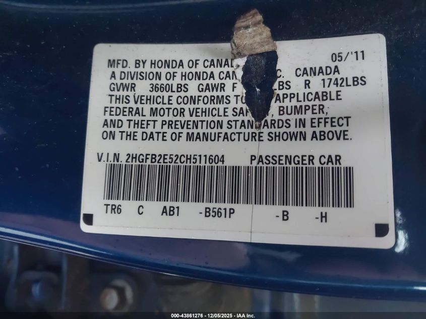 Автомобиль 2012 года — отличное сочетание качества, надёжности и выгоды. Компания Royal Motors предлагает пригнать HONDA CIVIC из США под ключ: мы проверяем авто по VIN (2HGFB2E52CH511604), организуем доставку, растаможку и при необходимости выполняем ремонт на собственном СТО в Киеве. Модель имеет цвет Синий, работает на Бензин, оснащена двигателем 1.8 и приводом Передний привод. С Royal Motors вы получаете полностью проверенный автомобиль с прозрачной историей и выгодной ценой.
