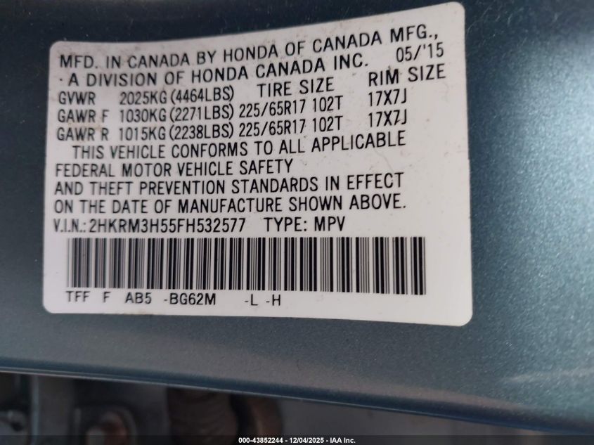Автомобиль 2015 года — отличное сочетание качества, надёжности и выгоды. Компания Royal Motors предлагает пригнать HONDA CR-V из США под ключ: мы проверяем авто по VIN (2HKRM3H55FH532577), организуем доставку, растаможку и при необходимости выполняем ремонт на собственном СТО в Киеве. Модель имеет цвет Бирюзовий, работает на Бензин, оснащена двигателем 2.4 и приводом Передний привод. С Royal Motors вы получаете полностью проверенный автомобиль с прозрачной историей и выгодной ценой.