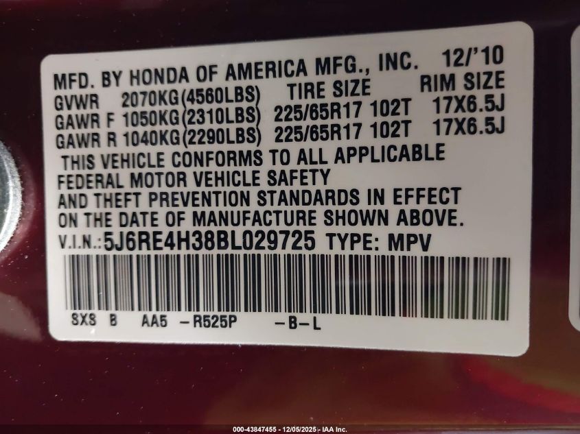 Автомобиль 2011 года — отличное сочетание качества, надёжности и выгоды. Компания Royal Motors предлагает пригнать HONDA CR-V из США под ключ: мы проверяем авто по VIN (5J6RE4H38BL029725), организуем доставку, растаможку и при необходимости выполняем ремонт на собственном СТО в Киеве. Модель имеет цвет Бургундия, работает на Бензин, оснащена двигателем 2.4 и приводом Полный привод. С Royal Motors вы получаете полностью проверенный автомобиль с прозрачной историей и выгодной ценой.