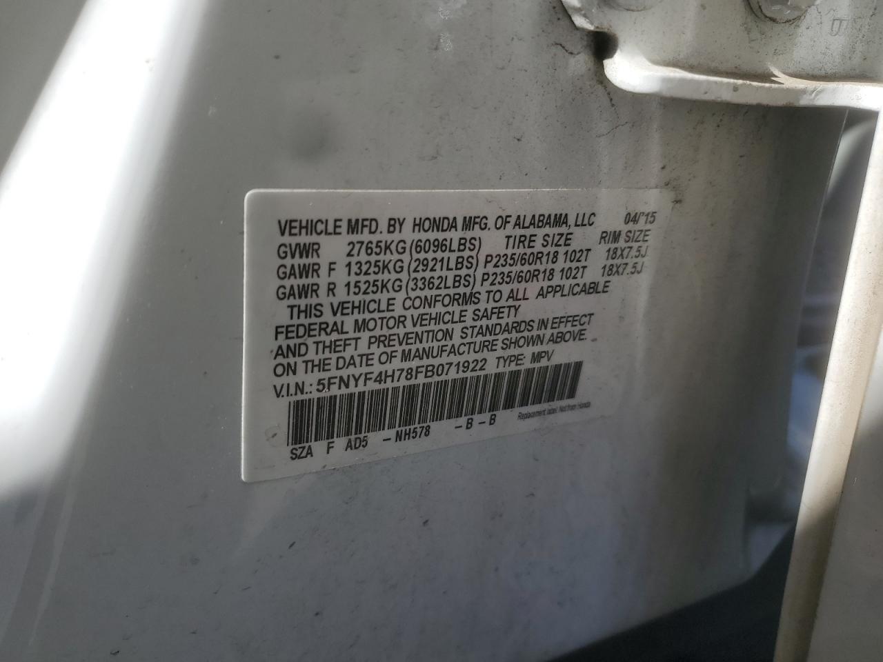 Автомобиль 2015 года — отличное сочетание качества, надёжности и выгоды. Компания Royal Motors предлагает пригнать HONDA PILOT из США под ключ: мы проверяем авто по VIN (5FNYF4H78FB071922), организуем доставку, растаможку и при необходимости выполняем ремонт на собственном СТО в Киеве. Модель имеет цвет Белый, работает на Бензин, оснащена двигателем 3.5 и приводом Полный привод. С Royal Motors вы получаете полностью проверенный автомобиль с прозрачной историей и выгодной ценой.
