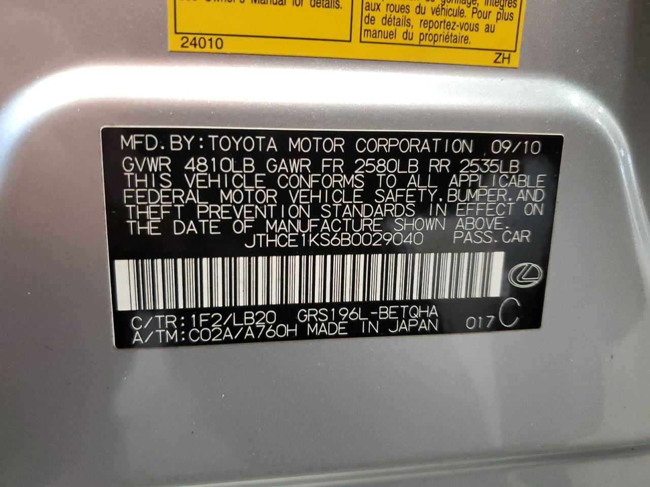 Автомобиль 2011 года — отличное сочетание качества, надёжности и выгоды. Компания Royal Motors предлагает пригнать LEXUS GS 350 из США под ключ: мы проверяем авто по VIN (JTHCE1KS6B0029040), организуем доставку, растаможку и при необходимости выполняем ремонт на собственном СТО в Киеве. Модель имеет цвет Серебряный, работает на Бензин, оснащена двигателем 3.5 и приводом Полный привод. С Royal Motors вы получаете полностью проверенный автомобиль с прозрачной историей и выгодной ценой.