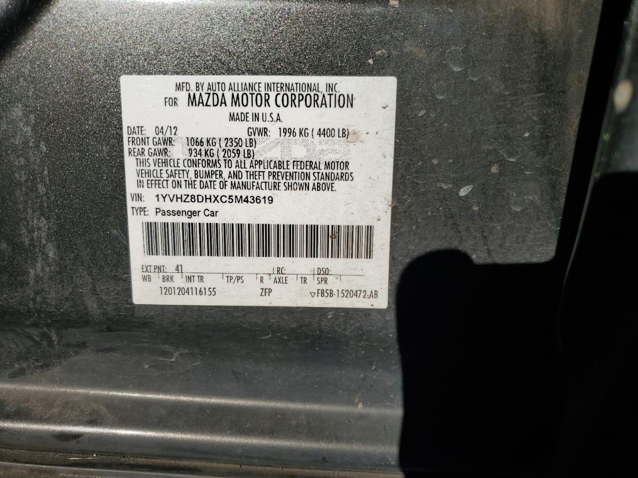 Автомобиль 2012 года — отличное сочетание качества, надёжности и выгоды. Компания Royal Motors предлагает пригнать MAZDA 6 из США под ключ: мы проверяем авто по VIN (1YVHZ8DHXC5M43619), организуем доставку, растаможку и при необходимости выполняем ремонт на собственном СТО в Киеве. Модель имеет цвет Черный, работает на Бензин, оснащена двигателем 2.5 и приводом . С Royal Motors вы получаете полностью проверенный автомобиль с прозрачной историей и выгодной ценой.