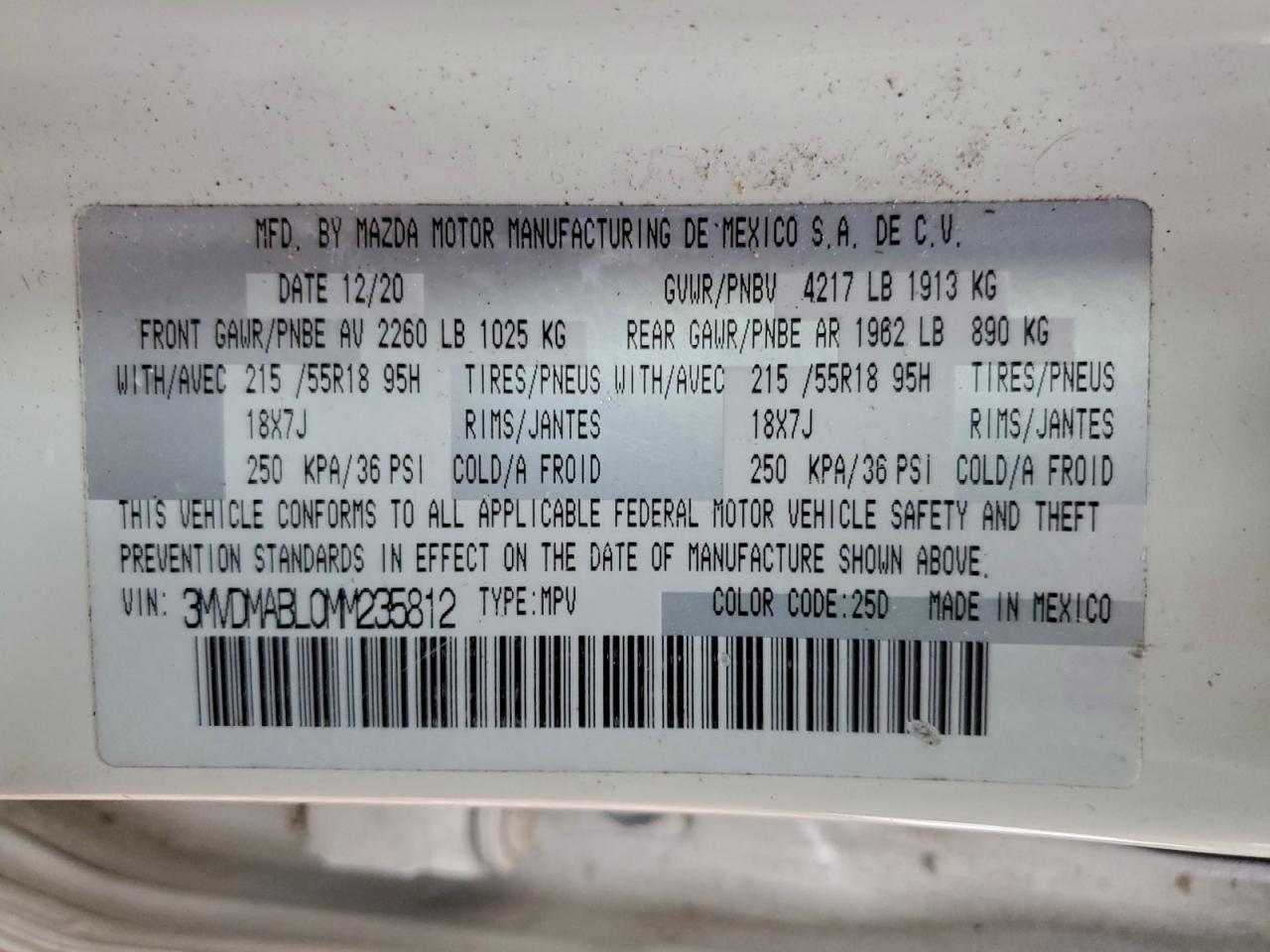Автомобиль 2021 года — отличное сочетание качества, надёжности и выгоды. Компания Royal Motors предлагает пригнать MAZDA CX-30 из США под ключ: мы проверяем авто по VIN (3MVDMABL0MM235812), организуем доставку, растаможку и при необходимости выполняем ремонт на собственном СТО в Киеве. Модель имеет цвет Белый, работает на Бензин, оснащена двигателем 2.5 и приводом . С Royal Motors вы получаете полностью проверенный автомобиль с прозрачной историей и выгодной ценой.
