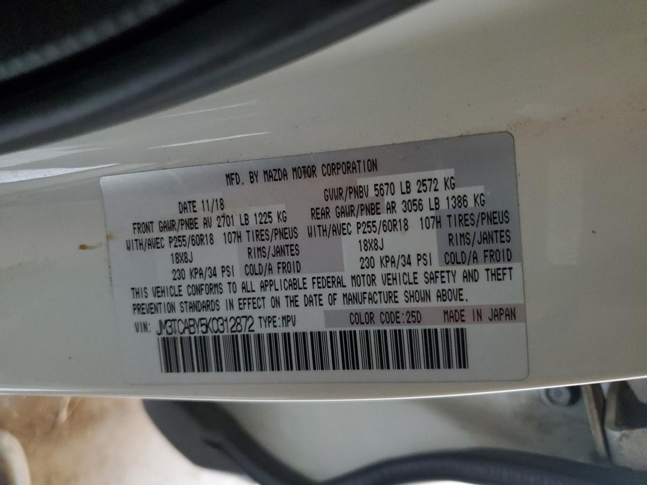 Автомобиль 2019 года — отличное сочетание качества, надёжности и выгоды. Компания Royal Motors предлагает пригнать MAZDA CX-9 из США под ключ: мы проверяем авто по VIN (JM3TCABY5K0312872), организуем доставку, растаможку и при необходимости выполняем ремонт на собственном СТО в Киеве. Модель имеет цвет Белый, работает на Бензин, оснащена двигателем 2.5 и приводом . С Royal Motors вы получаете полностью проверенный автомобиль с прозрачной историей и выгодной ценой.