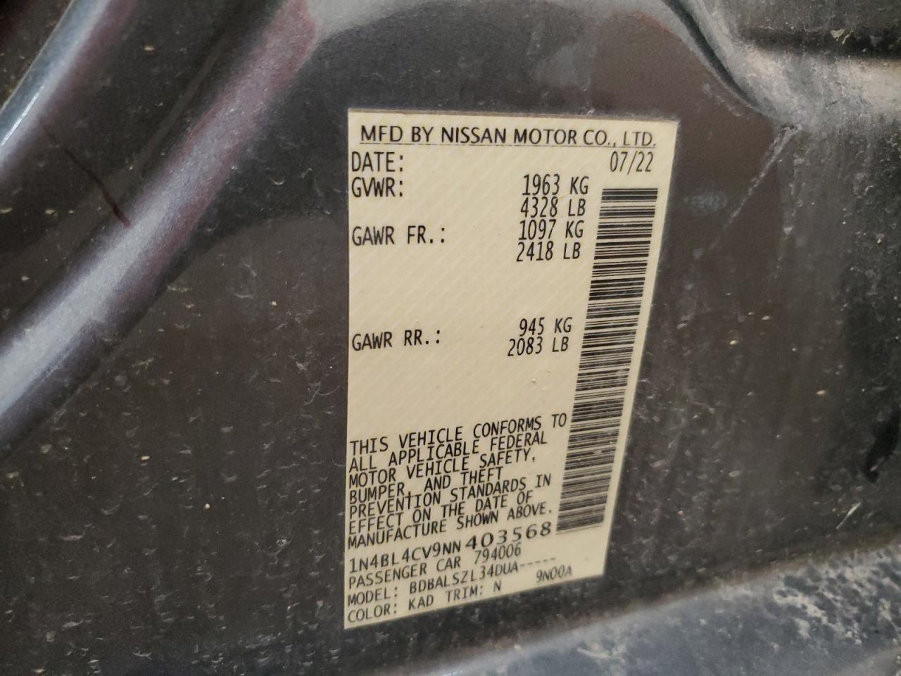 Автомобиль 2022 года — отличное сочетание качества, надёжности и выгоды. Компания Royal Motors предлагает пригнать NISSAN ALTIMA из США под ключ: мы проверяем авто по VIN (1N4BL4CV9NN403568), организуем доставку, растаможку и при необходимости выполняем ремонт на собственном СТО в Киеве. Модель имеет цвет Серый, работает на Бензин, оснащена двигателем 2.5 и приводом . С Royal Motors вы получаете полностью проверенный автомобиль с прозрачной историей и выгодной ценой.