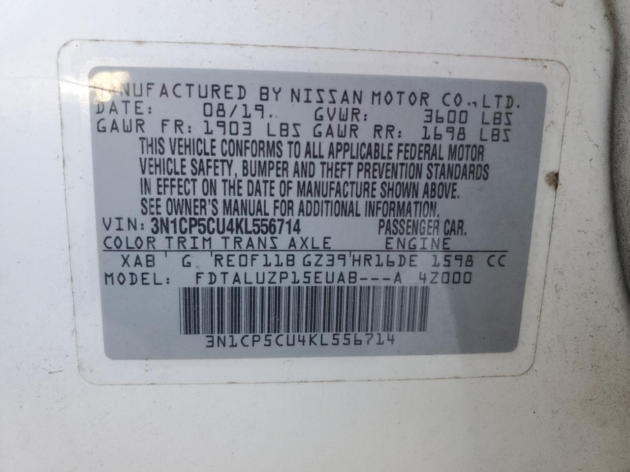Автомобиль 2019 года — отличное сочетание качества, надёжности и выгоды. Компания Royal Motors предлагает пригнать NISSAN KICKS из США под ключ: мы проверяем авто по VIN (3N1CP5CU4KL556714), организуем доставку, растаможку и при необходимости выполняем ремонт на собственном СТО в Киеве. Модель имеет цвет Белый, работает на Бензин, оснащена двигателем 1.6 и приводом . С Royal Motors вы получаете полностью проверенный автомобиль с прозрачной историей и выгодной ценой.