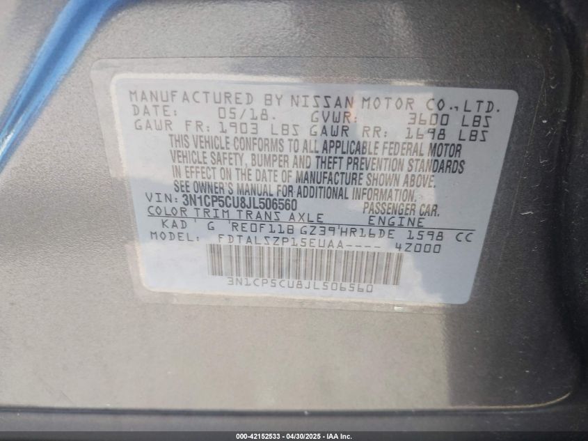 Автомобиль 2018 года — отличное сочетание качества, надёжности и выгоды. Компания Royal Motors предлагает пригнать NISSAN KICKS из США под ключ: мы проверяем авто по VIN (3N1CP5CU8JL506560), организуем доставку, растаможку и при необходимости выполняем ремонт на собственном СТО в Киеве. Модель имеет цвет Серый, работает на Бензин, оснащена двигателем 1.6 и приводом Передний привод. С Royal Motors вы получаете полностью проверенный автомобиль с прозрачной историей и выгодной ценой.