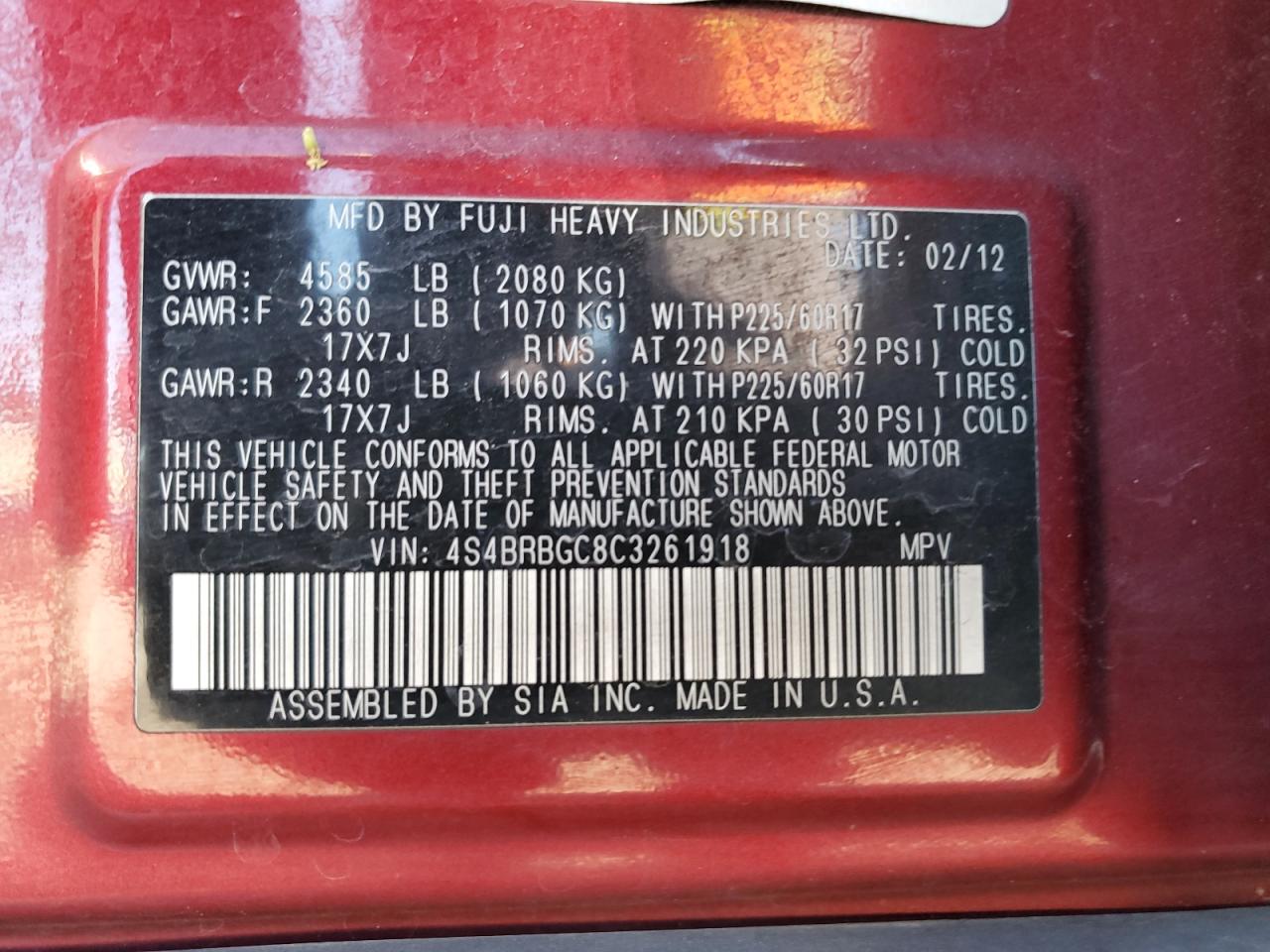 Автомобиль 2012 года — отличное сочетание качества, надёжности и выгоды. Компания Royal Motors предлагает пригнать SUBARU OUTBACK из США под ключ: мы проверяем авто по VIN (4S4BRBGC8C3261918), организуем доставку, растаможку и при необходимости выполняем ремонт на собственном СТО в Киеве. Модель имеет цвет Бургундия, работает на Бензин, оснащена двигателем 2.5 и приводом Полный привод. С Royal Motors вы получаете полностью проверенный автомобиль с прозрачной историей и выгодной ценой.