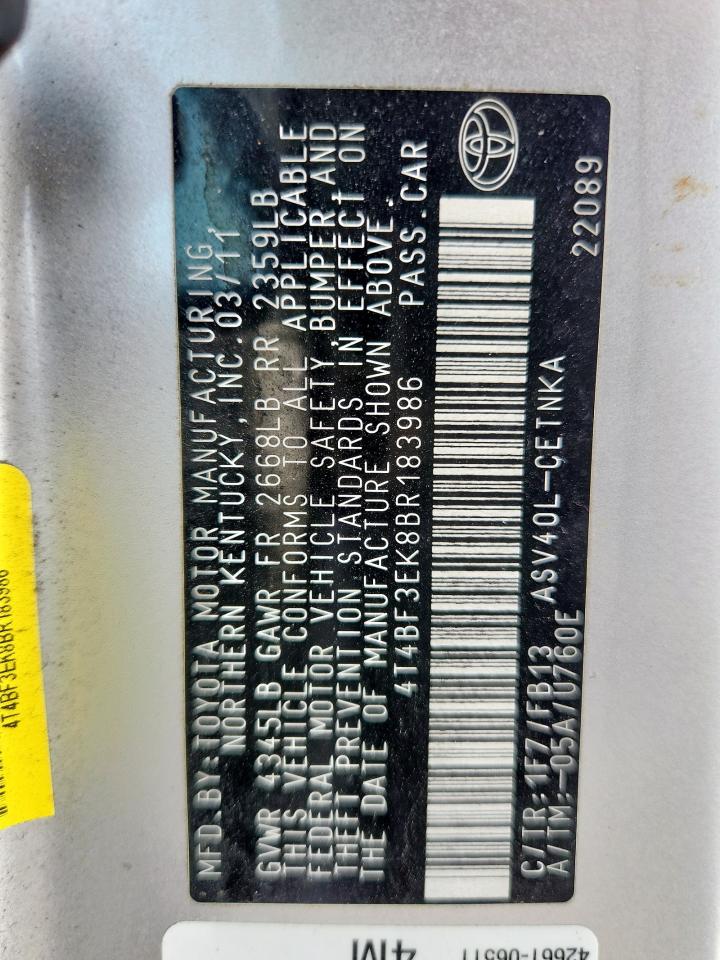 Автомобиль 2011 года — отличное сочетание качества, надёжности и выгоды. Компания Royal Motors предлагает пригнать TOYOTA CAMRY из США под ключ: мы проверяем авто по VIN (4T4BF3EK8BR183986), организуем доставку, растаможку и при необходимости выполняем ремонт на собственном СТО в Киеве. Модель имеет цвет Серебряный, работает на Бензин, оснащена двигателем 2.5 и приводом . С Royal Motors вы получаете полностью проверенный автомобиль с прозрачной историей и выгодной ценой.