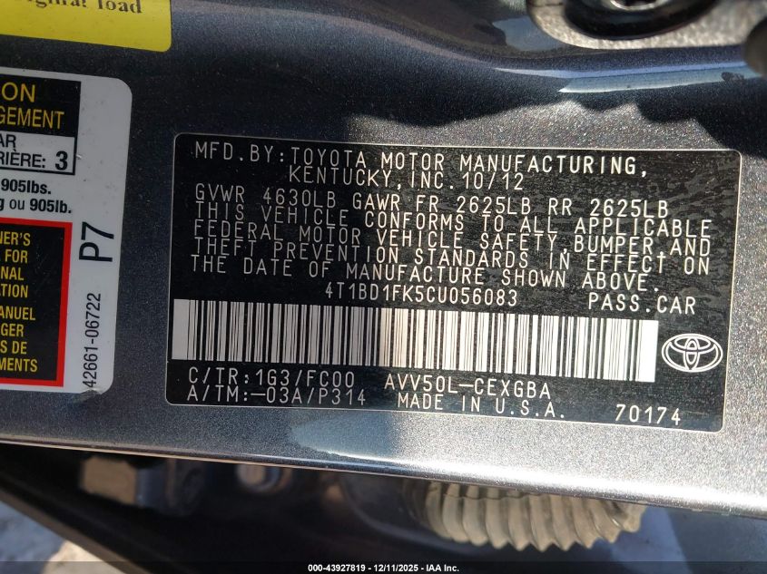 Автомобиль 2012 года — отличное сочетание качества, надёжности и выгоды. Компания Royal Motors предлагает пригнать TOYOTA CAMRY HYBRID из США под ключ: мы проверяем авто по VIN (4T1BD1FK5CU056083), организуем доставку, растаможку и при необходимости выполняем ремонт на собственном СТО в Киеве. Модель имеет цвет Серый, работает на Гибрид, оснащена двигателем 2.5 и приводом Передний привод. С Royal Motors вы получаете полностью проверенный автомобиль с прозрачной историей и выгодной ценой.