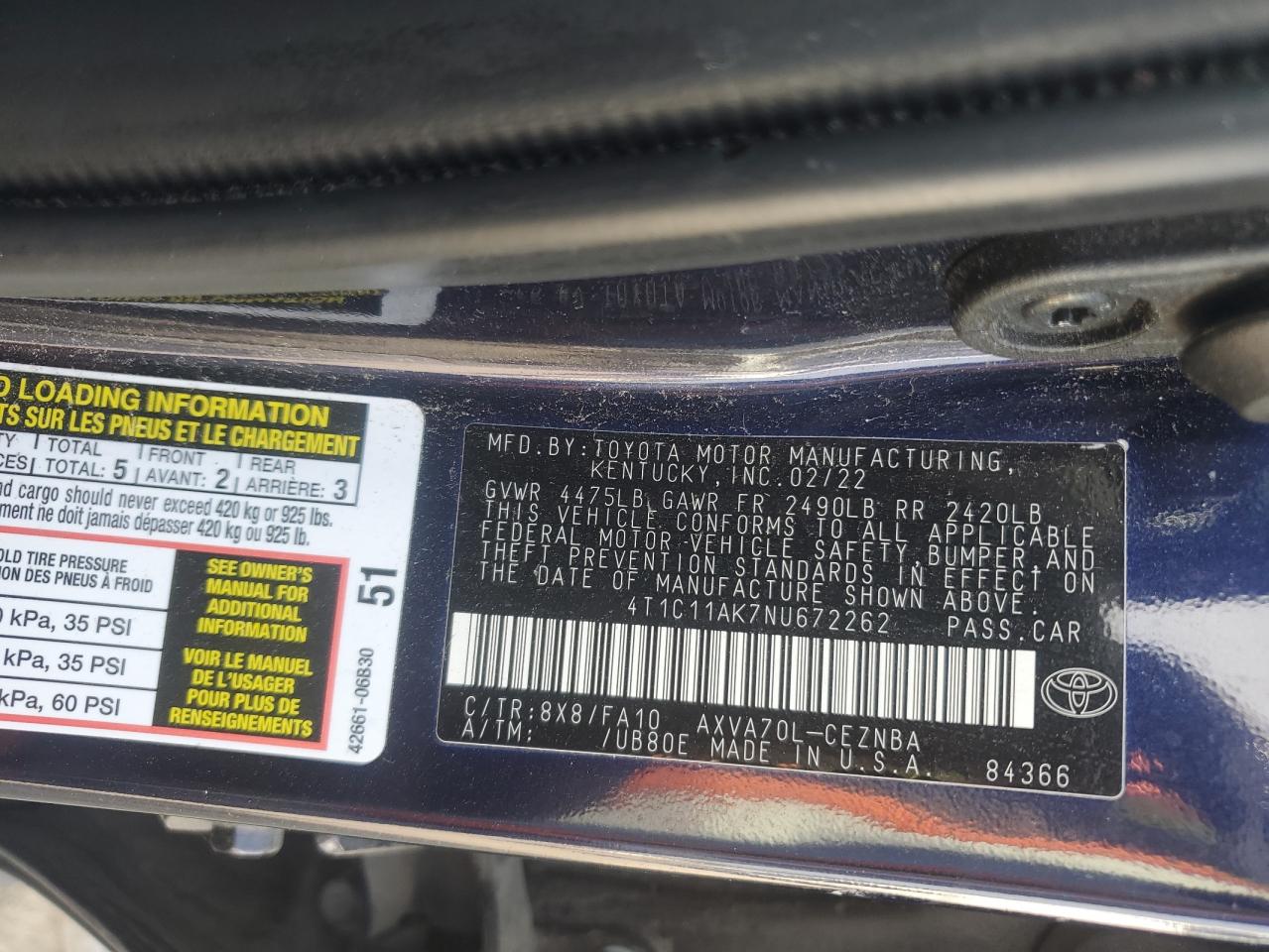 Автомобиль 2022 года — отличное сочетание качества, надёжности и выгоды. Компания Royal Motors предлагает пригнать TOYOTA CAMRY из США под ключ: мы проверяем авто по VIN (4T1C11AK7NU672262), организуем доставку, растаможку и при необходимости выполняем ремонт на собственном СТО в Киеве. Модель имеет цвет Синий, работает на Бензин, оснащена двигателем 2.5 и приводом . С Royal Motors вы получаете полностью проверенный автомобиль с прозрачной историей и выгодной ценой.