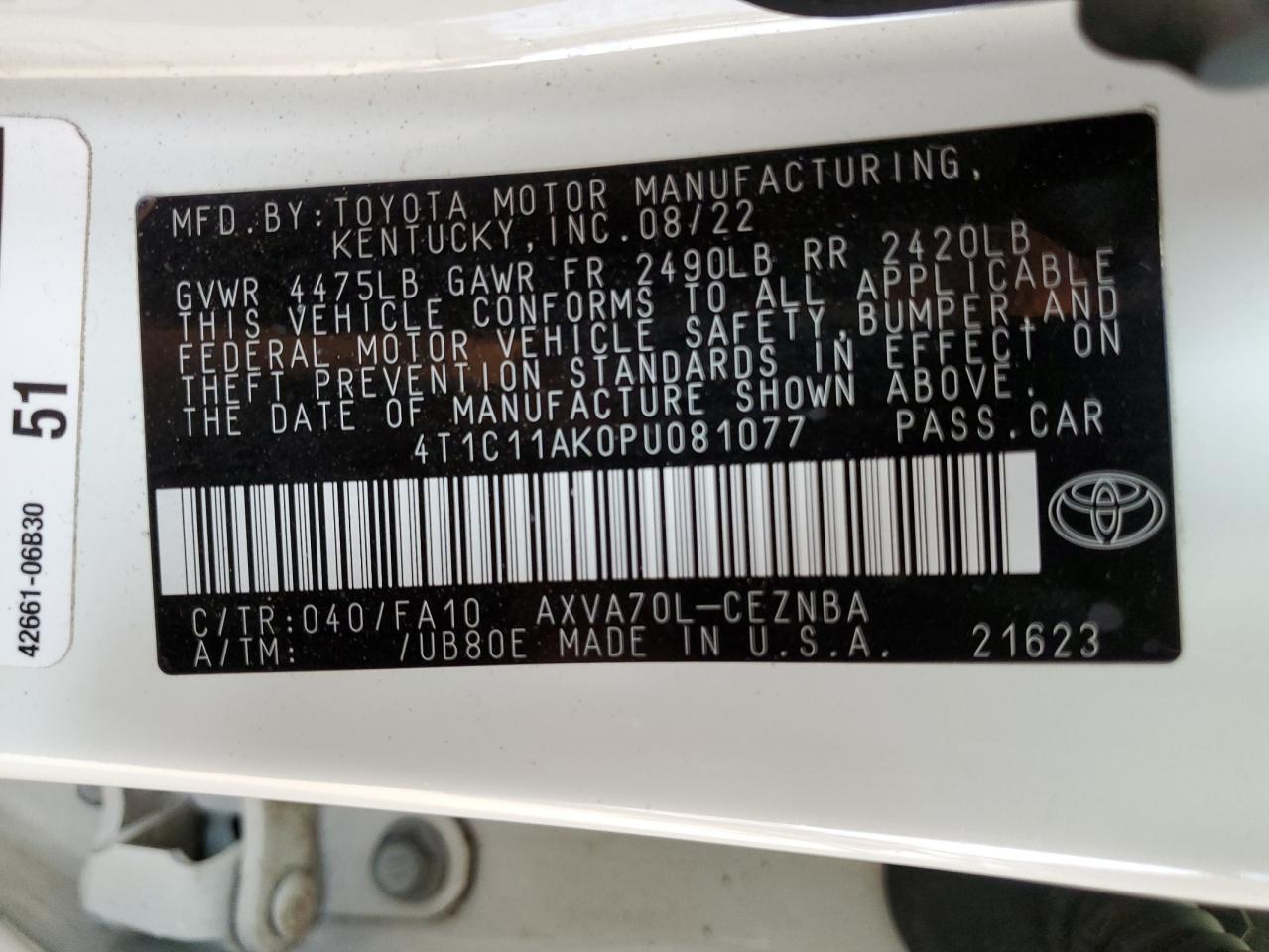 Автомобиль 2023 года — отличное сочетание качества, надёжности и выгоды. Компания Royal Motors предлагает пригнать TOYOTA CAMRY из США под ключ: мы проверяем авто по VIN (4T1C11AK0PU081077), организуем доставку, растаможку и при необходимости выполняем ремонт на собственном СТО в Киеве. Модель имеет цвет Белый, работает на Бензин, оснащена двигателем 2.5 и приводом . С Royal Motors вы получаете полностью проверенный автомобиль с прозрачной историей и выгодной ценой.