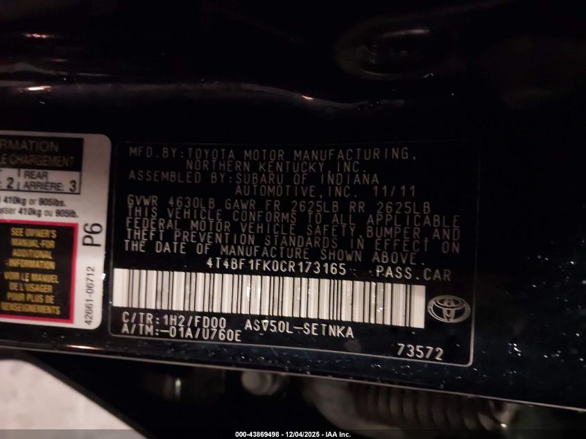 Автомобиль 2012 года — отличное сочетание качества, надёжности и выгоды. Компания Royal Motors предлагает пригнать TOYOTA CAMRY из США под ключ: мы проверяем авто по VIN (4T4BF1FK0CR173165), организуем доставку, растаможку и при необходимости выполняем ремонт на собственном СТО в Киеве. Модель имеет цвет Черный, работает на Бензин, оснащена двигателем 2.5 и приводом Передний привод. С Royal Motors вы получаете полностью проверенный автомобиль с прозрачной историей и выгодной ценой.