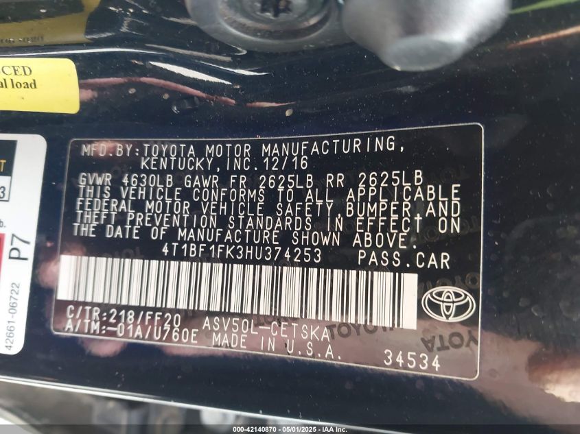 Автомобиль 2017 года — отличное сочетание качества, надёжности и выгоды. Компания Royal Motors предлагает пригнать TOYOTA CAMRY из США под ключ: мы проверяем авто по VIN (4T1BF1FK3HU374253), организуем доставку, растаможку и при необходимости выполняем ремонт на собственном СТО в Киеве. Модель имеет цвет Черный, работает на Бензин, оснащена двигателем 2.5 и приводом Передний привод. С Royal Motors вы получаете полностью проверенный автомобиль с прозрачной историей и выгодной ценой.