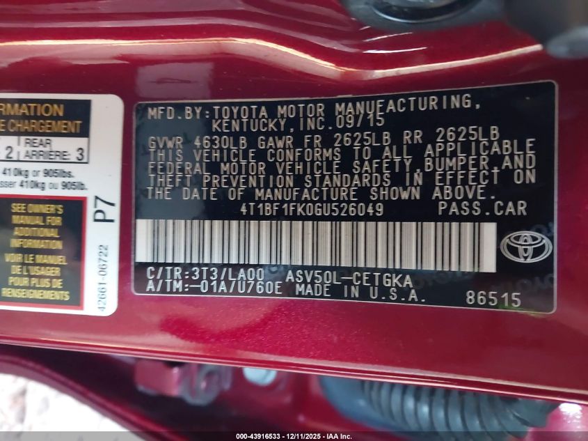 Автомобиль 2016 года — отличное сочетание качества, надёжности и выгоды. Компания Royal Motors предлагает пригнать TOYOTA CAMRY из США под ключ: мы проверяем авто по VIN (4T1BF1FK0GU526049), организуем доставку, растаможку и при необходимости выполняем ремонт на собственном СТО в Киеве. Модель имеет цвет Красный, работает на Бензин, оснащена двигателем 2.5 и приводом Передний привод. С Royal Motors вы получаете полностью проверенный автомобиль с прозрачной историей и выгодной ценой.