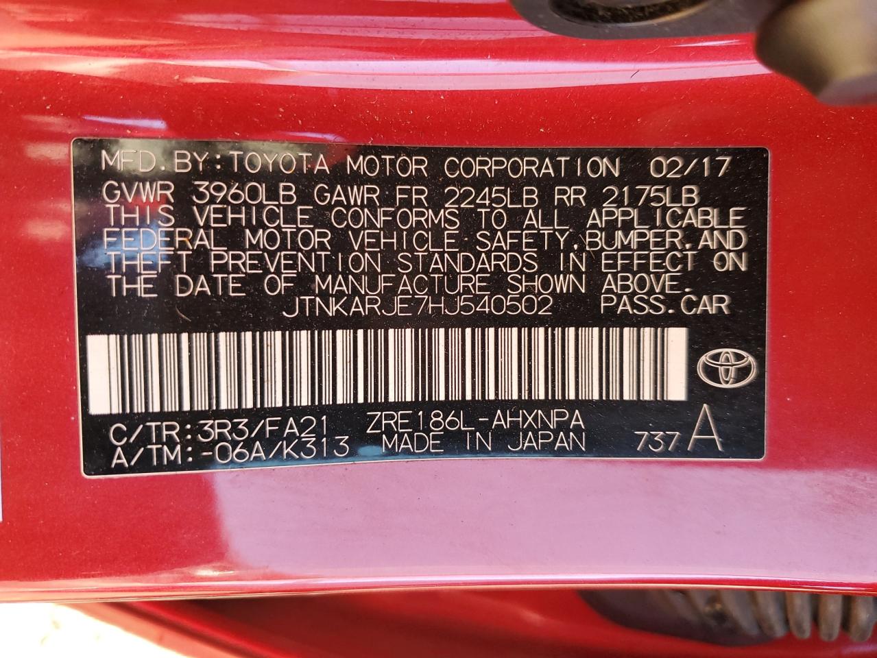 Автомобиль 2017 года — отличное сочетание качества, надёжности и выгоды. Компания Royal Motors предлагает пригнать TOYOTA COROLLA из США под ключ: мы проверяем авто по VIN (JTNKARJE7HJ540502), организуем доставку, растаможку и при необходимости выполняем ремонт на собственном СТО в Киеве. Модель имеет цвет Красный, работает на Бензин, оснащена двигателем 1.8 и приводом . С Royal Motors вы получаете полностью проверенный автомобиль с прозрачной историей и выгодной ценой.