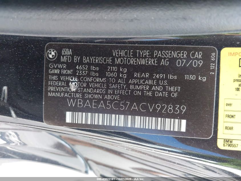 Автомобіль 2010 року — чудовий вибір для тих, хто цінує якість, надійність і вигоду. Компанія Royal Motors пропонує пригнати BMW 6 SERIES з США під ключ: ми перевіряємо авто за VIN (WBAEA5C57ACV92839), організовуємо доставку, розмитнення та за потреби — ремонт на власному СТО в Києві. Ця модель має колір Чорний, працює на Бензин, оснащена двигуном 4.8 і приводом Задній привід. З Royal Motors ви отримуєте повністю перевірений автомобіль із прозорою історією та вигідною ціною.