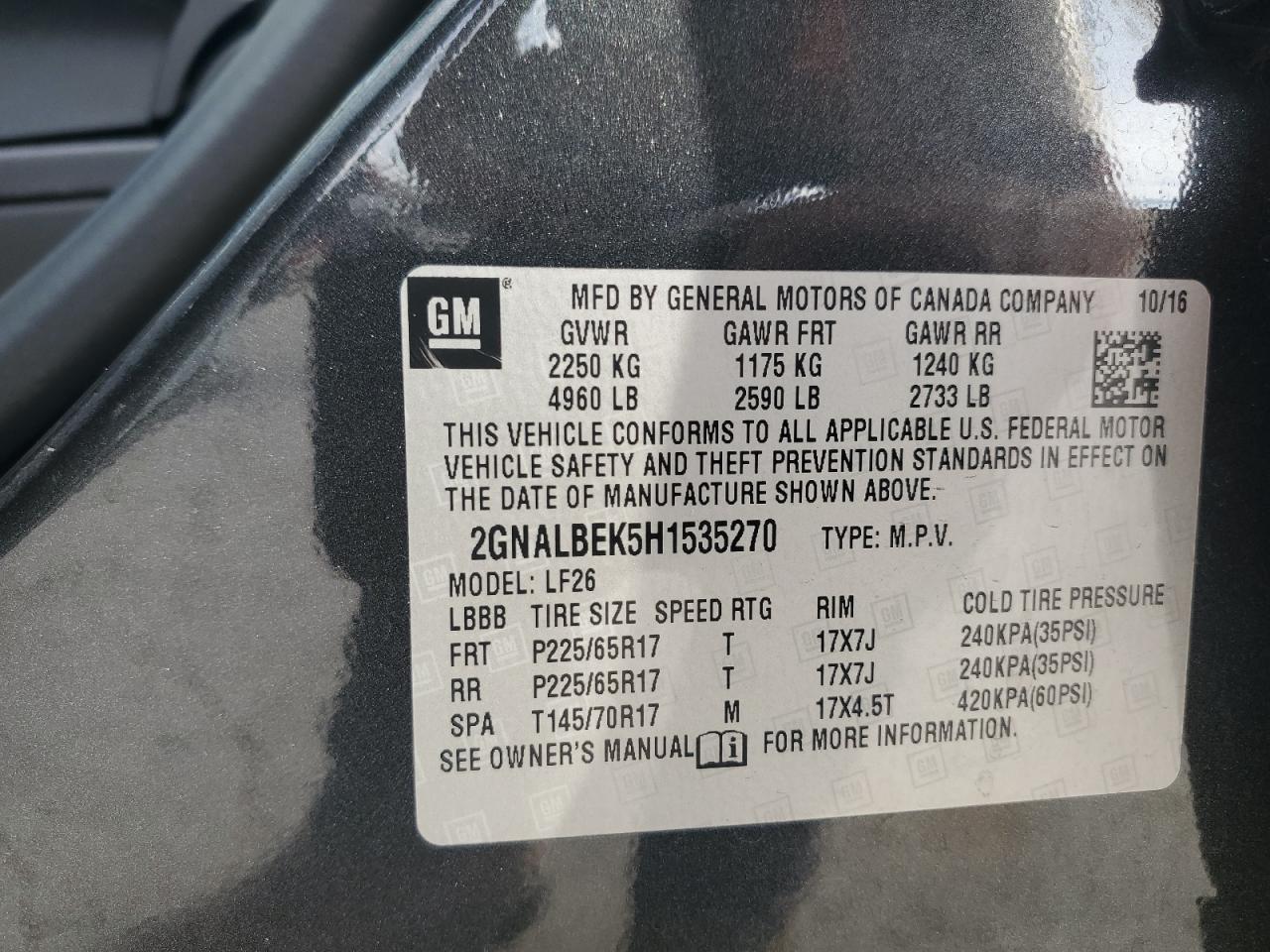 Автомобіль 2017 року — чудовий вибір для тих, хто цінує якість, надійність і вигоду. Компанія Royal Motors пропонує пригнати CHEVROLET EQUINOX з США під ключ: ми перевіряємо авто за VIN (2GNALBEK5H1535270), організовуємо доставку, розмитнення та за потреби — ремонт на власному СТО в Києві. Ця модель має колір Сірий, працює на Бензин, оснащена двигуном 2.4 і приводом . З Royal Motors ви отримуєте повністю перевірений автомобіль із прозорою історією та вигідною ціною.