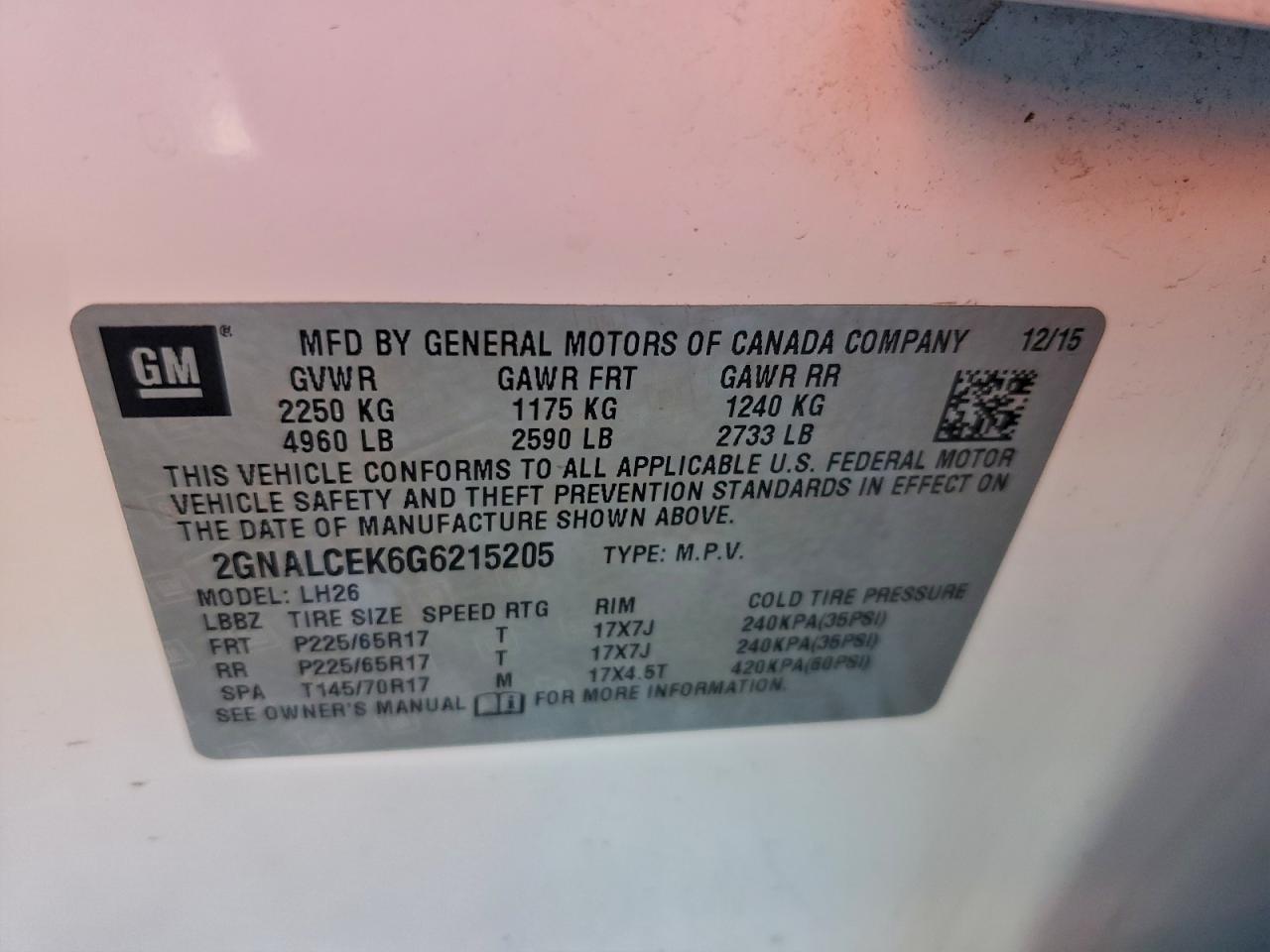 Автомобіль 2016 року — чудовий вибір для тих, хто цінує якість, надійність і вигоду. Компанія Royal Motors пропонує пригнати CHEVROLET EQUINOX з США під ключ: ми перевіряємо авто за VIN (2GNALCEK6G6215205), організовуємо доставку, розмитнення та за потреби — ремонт на власному СТО в Києві. Ця модель має колір Білий, працює на Бензин, оснащена двигуном 2.4 і приводом . З Royal Motors ви отримуєте повністю перевірений автомобіль із прозорою історією та вигідною ціною.