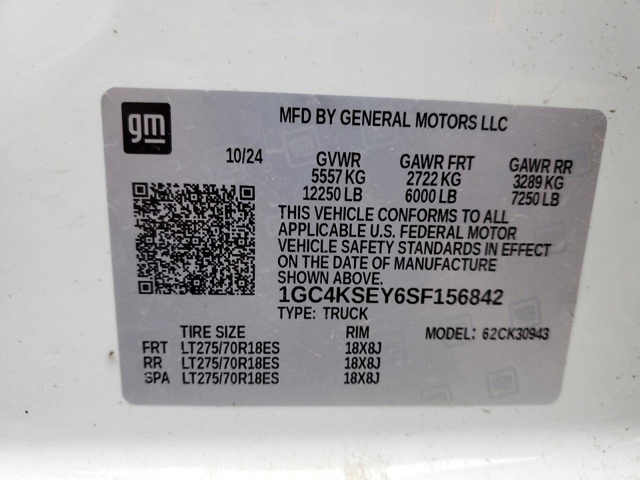 Колір БілийЦиліндри 8Привід 4x4 з заднім приводомVIN 1GC4KSEY6SF156842Стан Заводиться та їде (перевірено)Ушкодження ПерекиданняДата аукціона 2025-12-03
