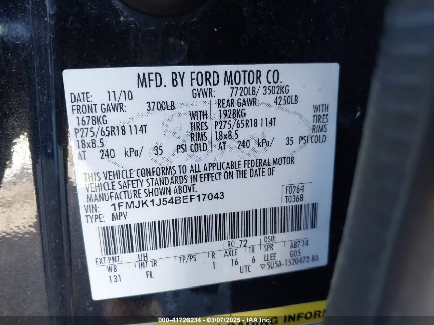 Автомобіль 2011 року — чудовий вибір для тих, хто цінує якість, надійність і вигоду. Компанія Royal Motors пропонує пригнати FORD EXPEDITION з США під ключ: ми перевіряємо авто за VIN (1FMJK1J54BEF17043), організовуємо доставку, розмитнення та за потреби — ремонт на власному СТО в Києві. Ця модель має колір Чорний, працює на Бензин, оснащена двигуном 5.4 і приводом Повний привід. З Royal Motors ви отримуєте повністю перевірений автомобіль із прозорою історією та вигідною ціною.
