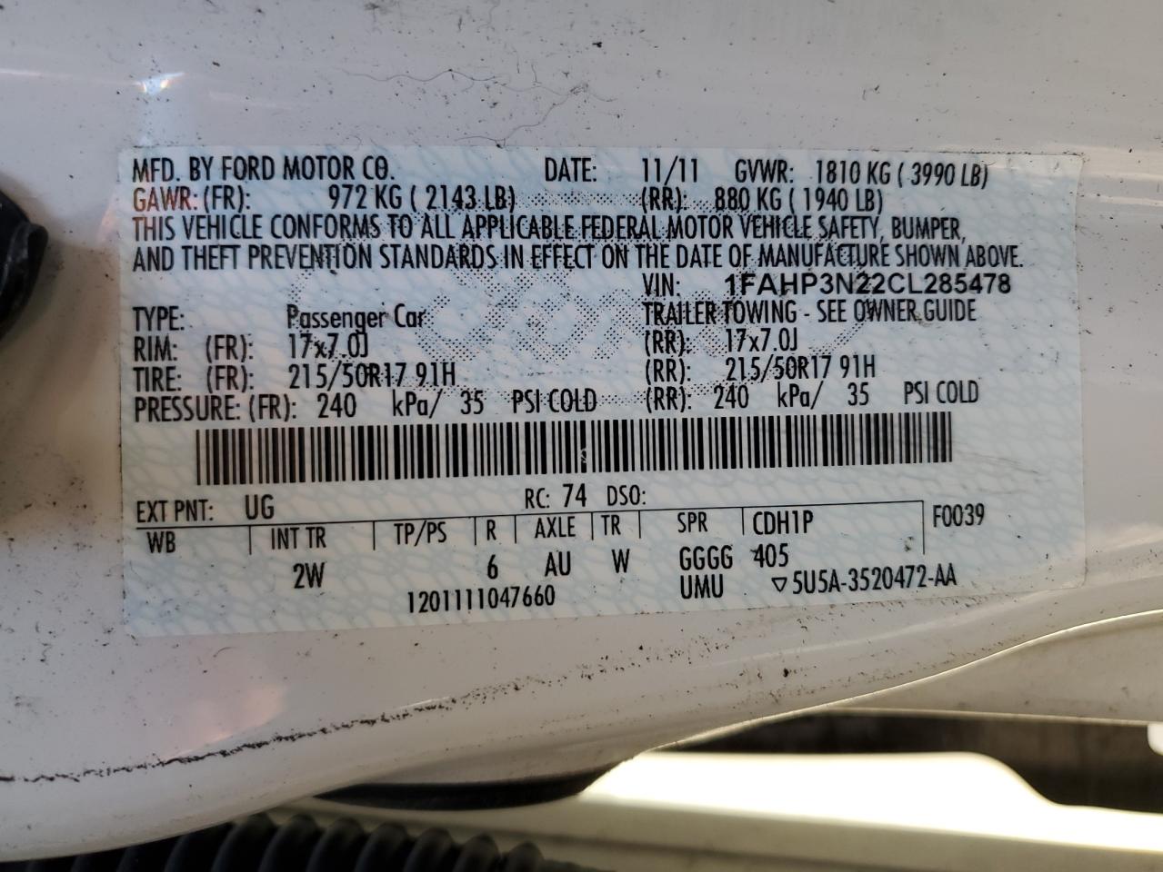 Автомобіль 2012 року — чудовий вибір для тих, хто цінує якість, надійність і вигоду. Компанія Royal Motors пропонує пригнати FORD FOCUS з США під ключ: ми перевіряємо авто за VIN (1FAHP3N22CL285478), організовуємо доставку, розмитнення та за потреби — ремонт на власному СТО в Києві. Ця модель має колір Білий, працює на Бензин, оснащена двигуном 2.0 і приводом . З Royal Motors ви отримуєте повністю перевірений автомобіль із прозорою історією та вигідною ціною.