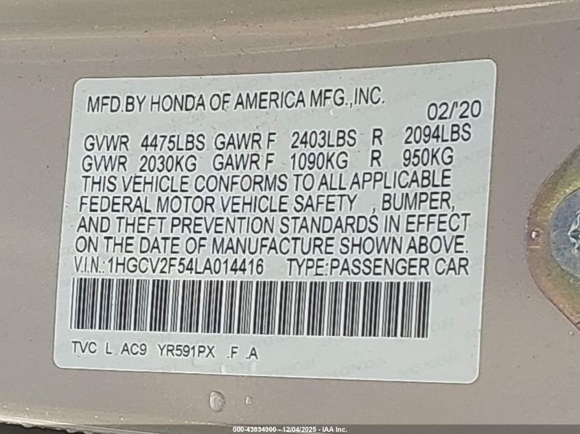 Автомобіль 2020 року — чудовий вибір для тих, хто цінує якість, надійність і вигоду. Компанія Royal Motors пропонує пригнати HONDA ACCORD з США під ключ: ми перевіряємо авто за VIN (1HGCV2F54LA014416), організовуємо доставку, розмитнення та за потреби — ремонт на власному СТО в Києві. Ця модель має колір Бежевий, працює на Бензин, оснащена двигуном 2.0 і приводом Передній привід. З Royal Motors ви отримуєте повністю перевірений автомобіль із прозорою історією та вигідною ціною.