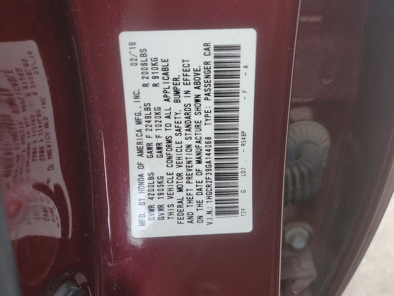 Автомобіль 2016 року — чудовий вибір для тих, хто цінує якість, надійність і вигоду. Компанія Royal Motors пропонує пригнати HONDA ACCORD з США під ключ: ми перевіряємо авто за VIN (1HGCR2F39GA144068), організовуємо доставку, розмитнення та за потреби — ремонт на власному СТО в Києві. Ця модель має колір Бургундія, працює на Бензин, оснащена двигуном 2.4 і приводом . З Royal Motors ви отримуєте повністю перевірений автомобіль із прозорою історією та вигідною ціною.