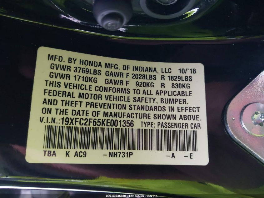 Автомобіль 2019 року — чудовий вибір для тих, хто цінує якість, надійність і вигоду. Компанія Royal Motors пропонує пригнати HONDA CIVIC з США під ключ: ми перевіряємо авто за VIN (19XFC2F65KE001356), організовуємо доставку, розмитнення та за потреби — ремонт на власному СТО в Києві. Ця модель має колір Чорний, працює на Бензин, оснащена двигуном 2.0 і приводом Передній привід. З Royal Motors ви отримуєте повністю перевірений автомобіль із прозорою історією та вигідною ціною.