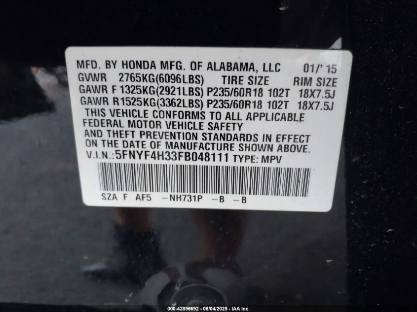 Автомобіль 2015 року — чудовий вибір для тих, хто цінує якість, надійність і вигоду. Компанія Royal Motors пропонує пригнати HONDA PILOT з США під ключ: ми перевіряємо авто за VIN (5FNYF4H33FB048111), організовуємо доставку, розмитнення та за потреби — ремонт на власному СТО в Києві. Ця модель має колір Чорний, працює на Бензин, оснащена двигуном 3.5 і приводом Повний привід. З Royal Motors ви отримуєте повністю перевірений автомобіль із прозорою історією та вигідною ціною.