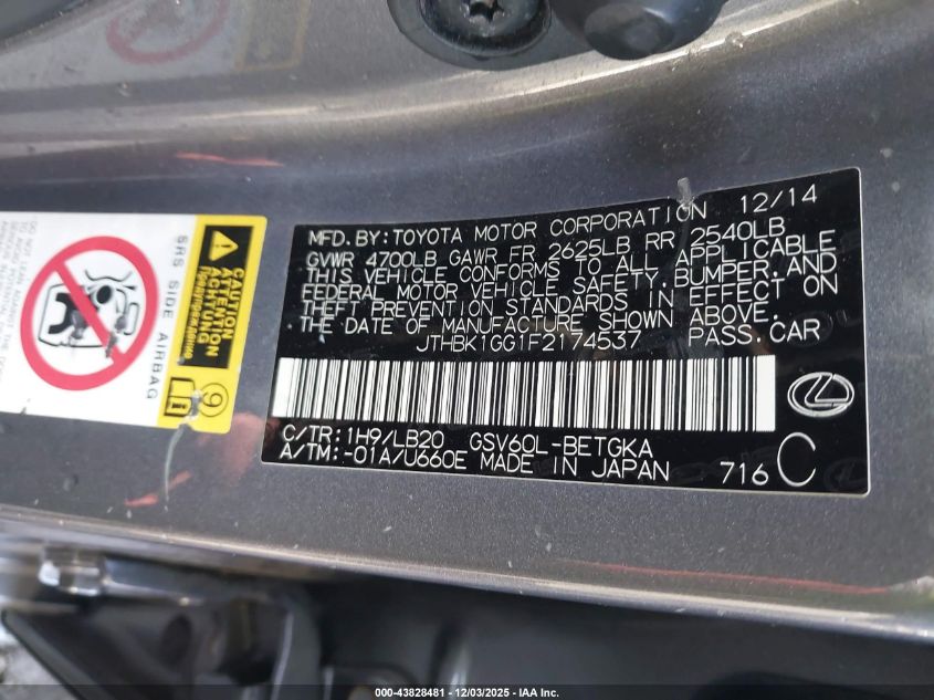 Автомобіль 2015 року — чудовий вибір для тих, хто цінує якість, надійність і вигоду. Компанія Royal Motors пропонує пригнати LEXUS ES 350 з США під ключ: ми перевіряємо авто за VIN (JTHBK1GG1F2174537), організовуємо доставку, розмитнення та за потреби — ремонт на власному СТО в Києві. Ця модель має колір Сірий, працює на Бензин, оснащена двигуном 3.5 і приводом Передній привід. З Royal Motors ви отримуєте повністю перевірений автомобіль із прозорою історією та вигідною ціною.