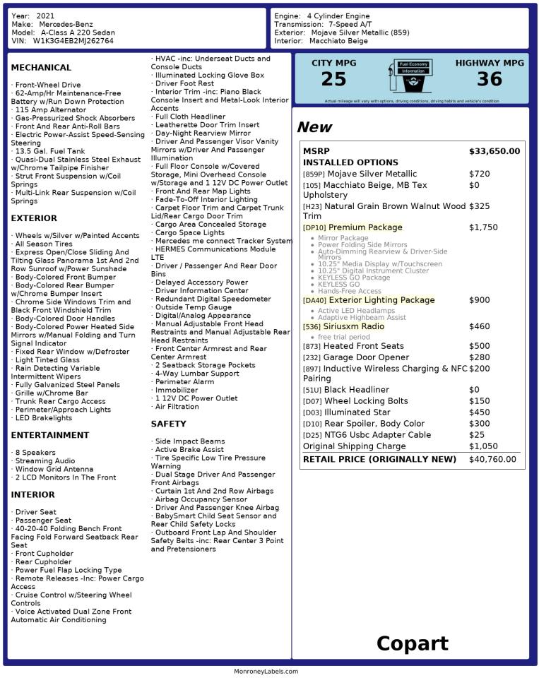 Автомобіль 2021 року — чудовий вибір для тих, хто цінує якість, надійність і вигоду. Компанія Royal Motors пропонує пригнати MERCEDES-BENZ A-CLASS з США під ключ: ми перевіряємо авто за VIN (W1K3G4EB2MJ262764), організовуємо доставку, розмитнення та за потреби — ремонт на власному СТО в Києві. Ця модель має колір Бежевий, працює на Бензин, оснащена двигуном 2.0 і приводом . З Royal Motors ви отримуєте повністю перевірений автомобіль із прозорою історією та вигідною ціною.