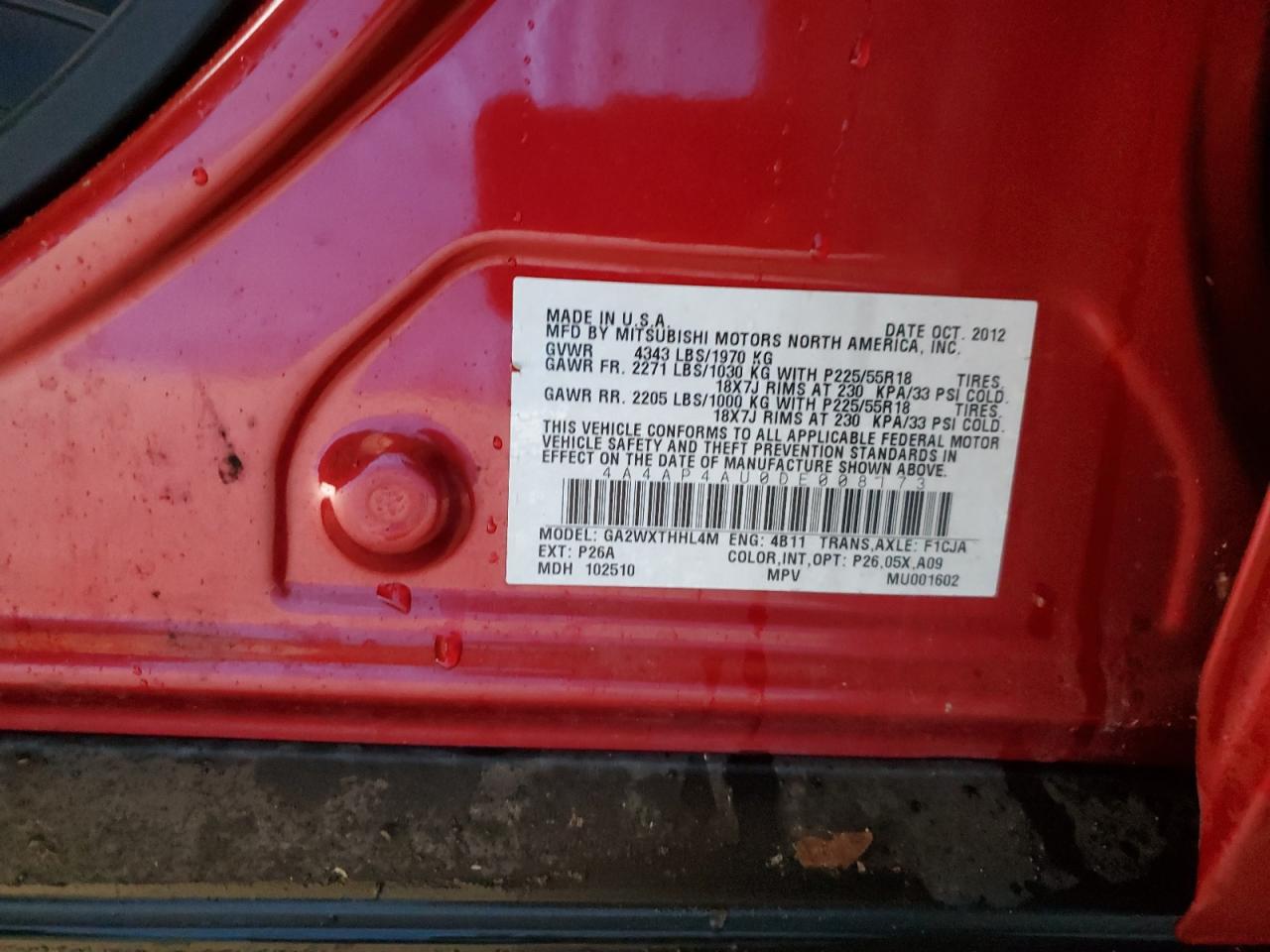 Автомобіль 2013 року — чудовий вибір для тих, хто цінує якість, надійність і вигоду. Компанія Royal Motors пропонує пригнати MITSUBISHI OUTLANDER з США під ключ: ми перевіряємо авто за VIN (4A4AP4AU0DE008173), організовуємо доставку, розмитнення та за потреби — ремонт на власному СТО в Києві. Ця модель має колір Червоний, працює на Бензин, оснащена двигуном 2.0 і приводом . З Royal Motors ви отримуєте повністю перевірений автомобіль із прозорою історією та вигідною ціною.