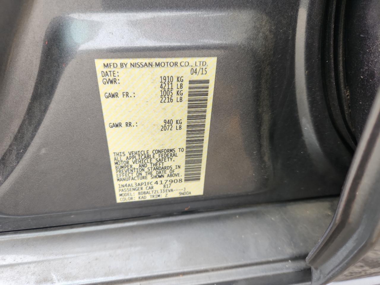 Автомобіль 2015 року — чудовий вибір для тих, хто цінує якість, надійність і вигоду. Компанія Royal Motors пропонує пригнати NISSAN ALTIMA з США під ключ: ми перевіряємо авто за VIN (1N4AL3AP1FC417908), організовуємо доставку, розмитнення та за потреби — ремонт на власному СТО в Києві. Ця модель має колір Сірий, працює на Бензин, оснащена двигуном 2.5 і приводом . З Royal Motors ви отримуєте повністю перевірений автомобіль із прозорою історією та вигідною ціною.