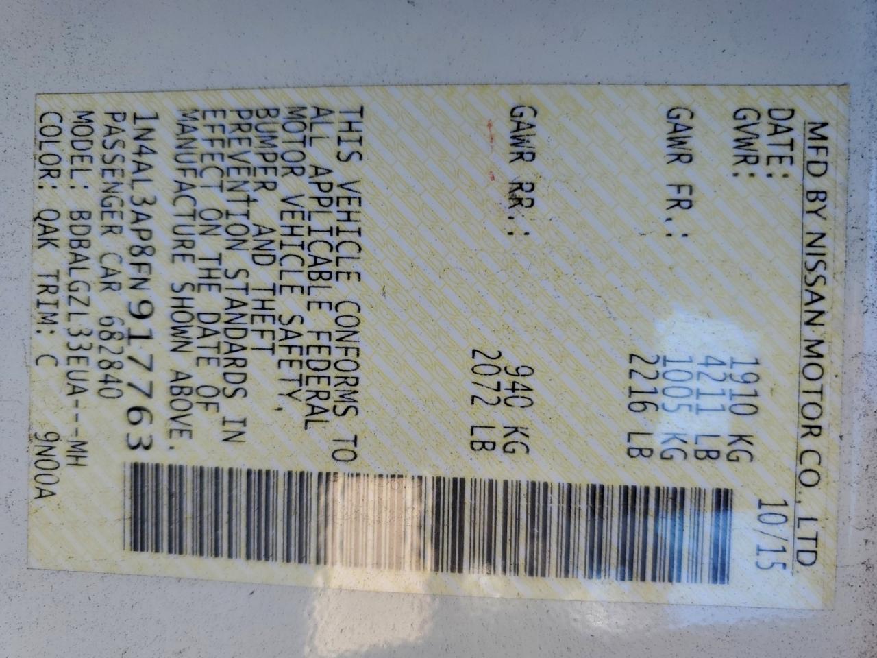 Автомобіль 2015 року — чудовий вибір для тих, хто цінує якість, надійність і вигоду. Компанія Royal Motors пропонує пригнати NISSAN ALTIMA з США під ключ: ми перевіряємо авто за VIN (1N4AL3AP8FN917763), організовуємо доставку, розмитнення та за потреби — ремонт на власному СТО в Києві. Ця модель має колір Білий, працює на Бензин, оснащена двигуном 2.5 і приводом . З Royal Motors ви отримуєте повністю перевірений автомобіль із прозорою історією та вигідною ціною.