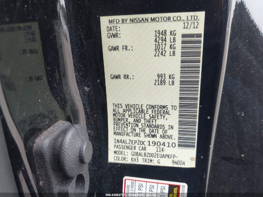 Автомобіль 2013 року — чудовий вибір для тих, хто цінує якість, надійність і вигоду. Компанія Royal Motors пропонує пригнати NISSAN ALTIMA з США під ключ: ми перевіряємо авто за VIN (1N4AL2EP2DC190410), організовуємо доставку, розмитнення та за потреби — ремонт на власному СТО в Києві. Ця модель має колір Чорний, працює на Бензин, оснащена двигуном 2.5 і приводом Передній привід. З Royal Motors ви отримуєте повністю перевірений автомобіль із прозорою історією та вигідною ціною.