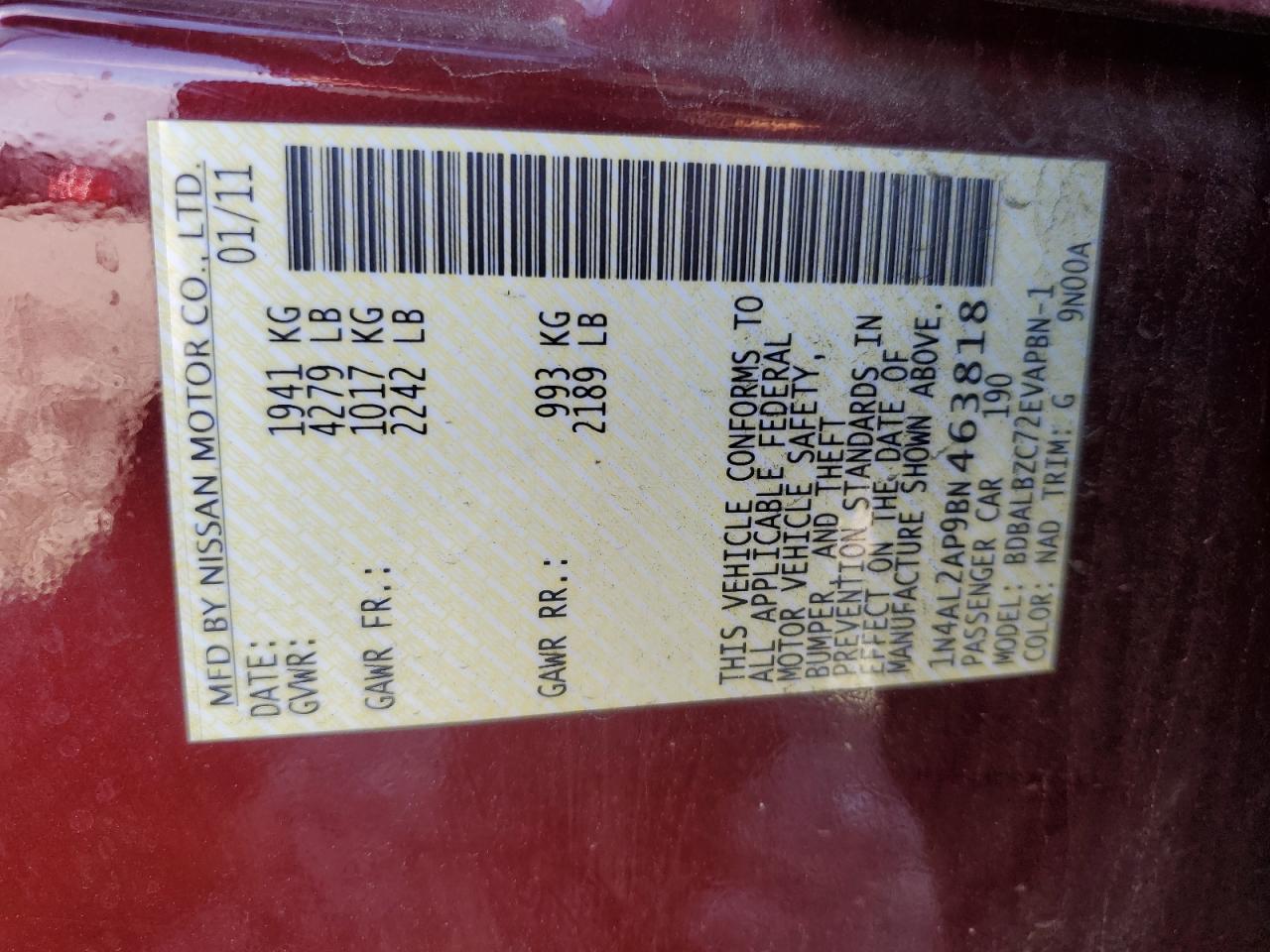 Автомобіль 2011 року — чудовий вибір для тих, хто цінує якість, надійність і вигоду. Компанія Royal Motors пропонує пригнати NISSAN ALTIMA з США під ключ: ми перевіряємо авто за VIN (1N4AL2AP9BN463818), організовуємо доставку, розмитнення та за потреби — ремонт на власному СТО в Києві. Ця модель має колір Бургундія, працює на Бензин, оснащена двигуном 2.5 і приводом . З Royal Motors ви отримуєте повністю перевірений автомобіль із прозорою історією та вигідною ціною.