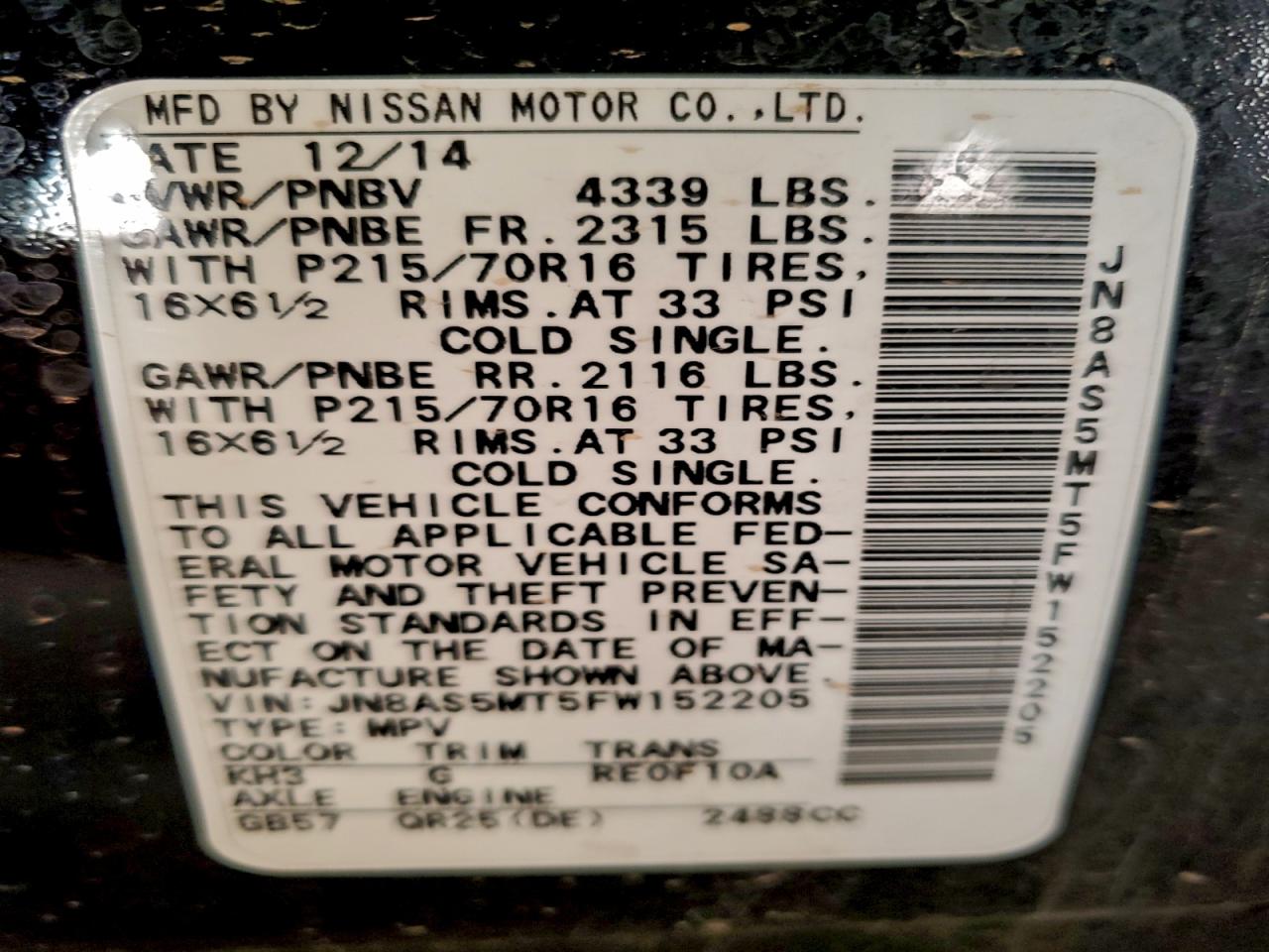 Автомобіль 2015 року — чудовий вибір для тих, хто цінує якість, надійність і вигоду. Компанія Royal Motors пропонує пригнати NISSAN ROGUE з США під ключ: ми перевіряємо авто за VIN (JN8AS5MT5FW152205), організовуємо доставку, розмитнення та за потреби — ремонт на власному СТО в Києві. Ця модель має колір Чорний, працює на Бензин, оснащена двигуном 2.5 і приводом . З Royal Motors ви отримуєте повністю перевірений автомобіль із прозорою історією та вигідною ціною.