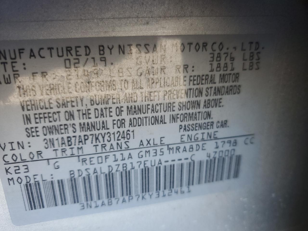 Автомобіль 2019 року — чудовий вибір для тих, хто цінує якість, надійність і вигоду. Компанія Royal Motors пропонує пригнати NISSAN SENTRA з США під ключ: ми перевіряємо авто за VIN (3N1AB7AP7KY312461), організовуємо доставку, розмитнення та за потреби — ремонт на власному СТО в Києві. Ця модель має колір Срібний, працює на Бензин, оснащена двигуном 1.8 і приводом . З Royal Motors ви отримуєте повністю перевірений автомобіль із прозорою історією та вигідною ціною.