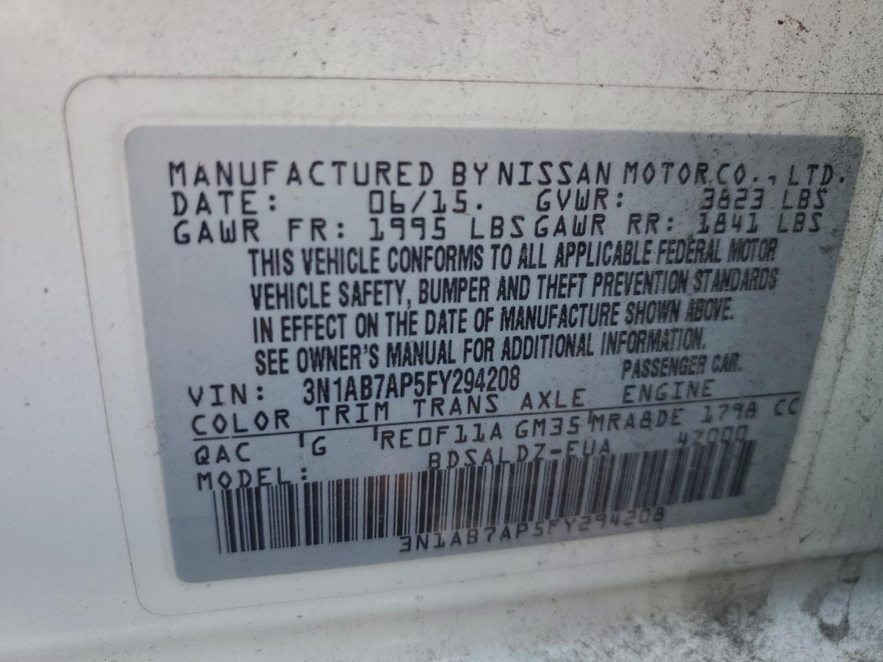 Автомобіль 2015 року — чудовий вибір для тих, хто цінує якість, надійність і вигоду. Компанія Royal Motors пропонує пригнати NISSAN SENTRA з США під ключ: ми перевіряємо авто за VIN (3N1AB7AP5FY294208), організовуємо доставку, розмитнення та за потреби — ремонт на власному СТО в Києві. Ця модель має колір Білий, працює на Бензин, оснащена двигуном 1.8 і приводом . З Royal Motors ви отримуєте повністю перевірений автомобіль із прозорою історією та вигідною ціною.