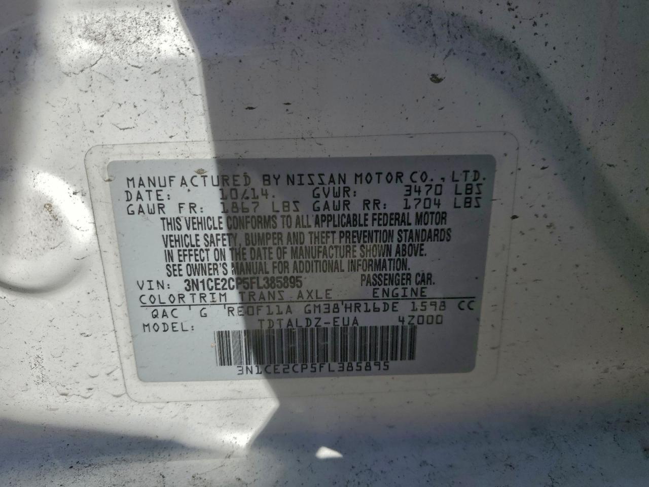 Автомобіль 2015 року — чудовий вибір для тих, хто цінує якість, надійність і вигоду. Компанія Royal Motors пропонує пригнати NISSAN VERSA NOTE з США під ключ: ми перевіряємо авто за VIN (3N1CE2CP5FL385895), організовуємо доставку, розмитнення та за потреби — ремонт на власному СТО в Києві. Ця модель має колір Білий, працює на Бензин, оснащена двигуном 1.6 і приводом . З Royal Motors ви отримуєте повністю перевірений автомобіль із прозорою історією та вигідною ціною.