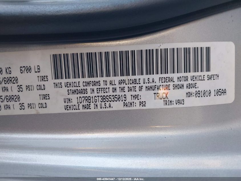 Автомобіль 2011 року — чудовий вибір для тих, хто цінує якість, надійність і вигоду. Компанія Royal Motors пропонує пригнати RAM 1500 з США під ключ: ми перевіряємо авто за VIN (1D7RB1GT3BS535019), організовуємо доставку, розмитнення та за потреби — ремонт на власному СТО в Києві. Ця модель має колір Срібний, працює на Бензин, оснащена двигуном 5.7 і приводом . З Royal Motors ви отримуєте повністю перевірений автомобіль із прозорою історією та вигідною ціною.