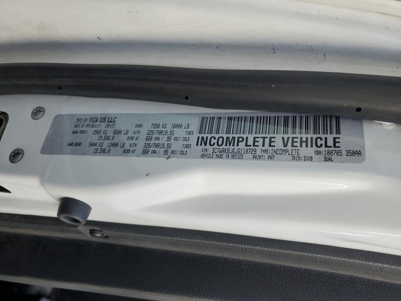 Колір БілийЦиліндри 8Привід Задній привідVIN 3C7WRKBJ6JG110729Стан Заводиться та їде (перевірено)Ушкодження НезначніДата аукціона 2025-12-02