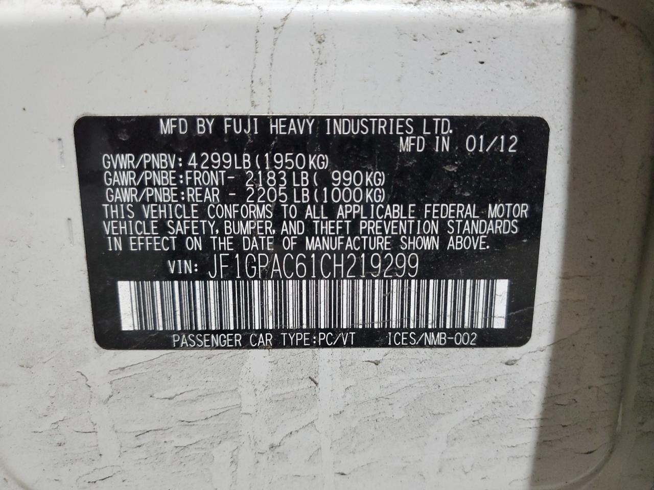 Автомобіль 2012 року — чудовий вибір для тих, хто цінує якість, надійність і вигоду. Компанія Royal Motors пропонує пригнати SUBARU IMPREZA з США під ключ: ми перевіряємо авто за VIN (JF1GPAC61CH219299), організовуємо доставку, розмитнення та за потреби — ремонт на власному СТО в Києві. Ця модель має колір Білий, працює на Бензин, оснащена двигуном 2.0 і приводом Повний привід. З Royal Motors ви отримуєте повністю перевірений автомобіль із прозорою історією та вигідною ціною.