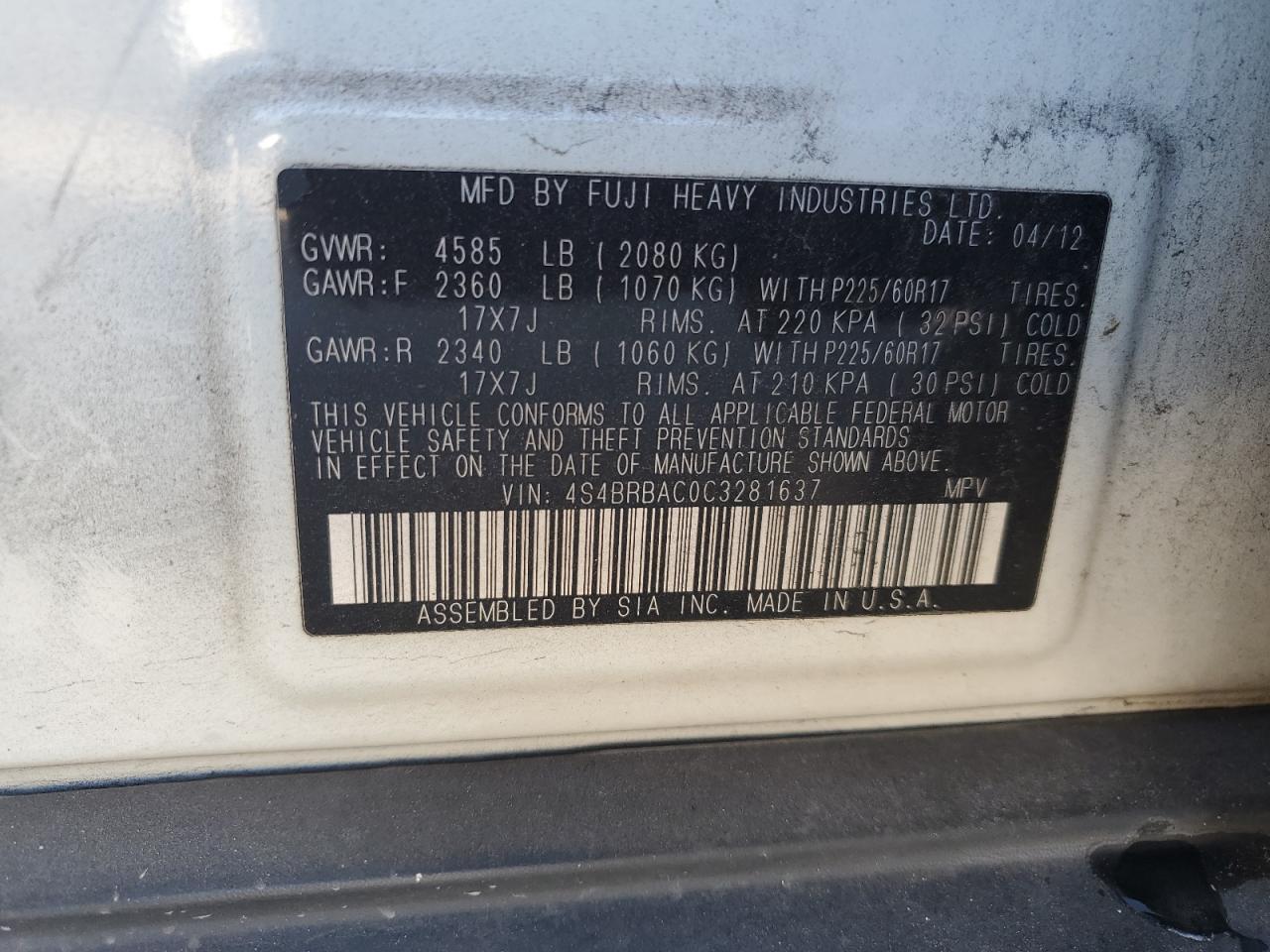 Автомобіль 2012 року — чудовий вибір для тих, хто цінує якість, надійність і вигоду. Компанія Royal Motors пропонує пригнати SUBARU OUTBACK з США під ключ: ми перевіряємо авто за VIN (4S4BRBAC0C3281637), організовуємо доставку, розмитнення та за потреби — ремонт на власному СТО в Києві. Ця модель має колір Білий, працює на Бензин, оснащена двигуном 2.5 і приводом Повний привід. З Royal Motors ви отримуєте повністю перевірений автомобіль із прозорою історією та вигідною ціною.