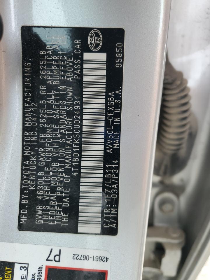 Автомобіль 2012 року — чудовий вибір для тих, хто цінує якість, надійність і вигоду. Компанія Royal Motors пропонує пригнати TOYOTA CAMRY HYBRID з США під ключ: ми перевіряємо авто за VIN (4T1BD1FK5CU024931), організовуємо доставку, розмитнення та за потреби — ремонт на власному СТО в Києві. Ця модель має колір Срібний, працює на Гібрид, оснащена двигуном 2.5 і приводом . З Royal Motors ви отримуєте повністю перевірений автомобіль із прозорою історією та вигідною ціною.